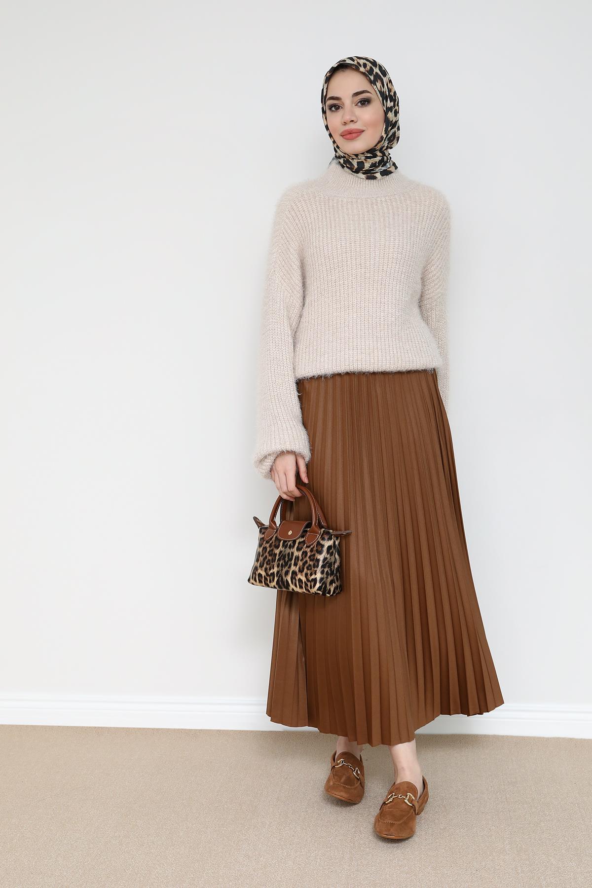 Piliseli Etek - Kahverengi